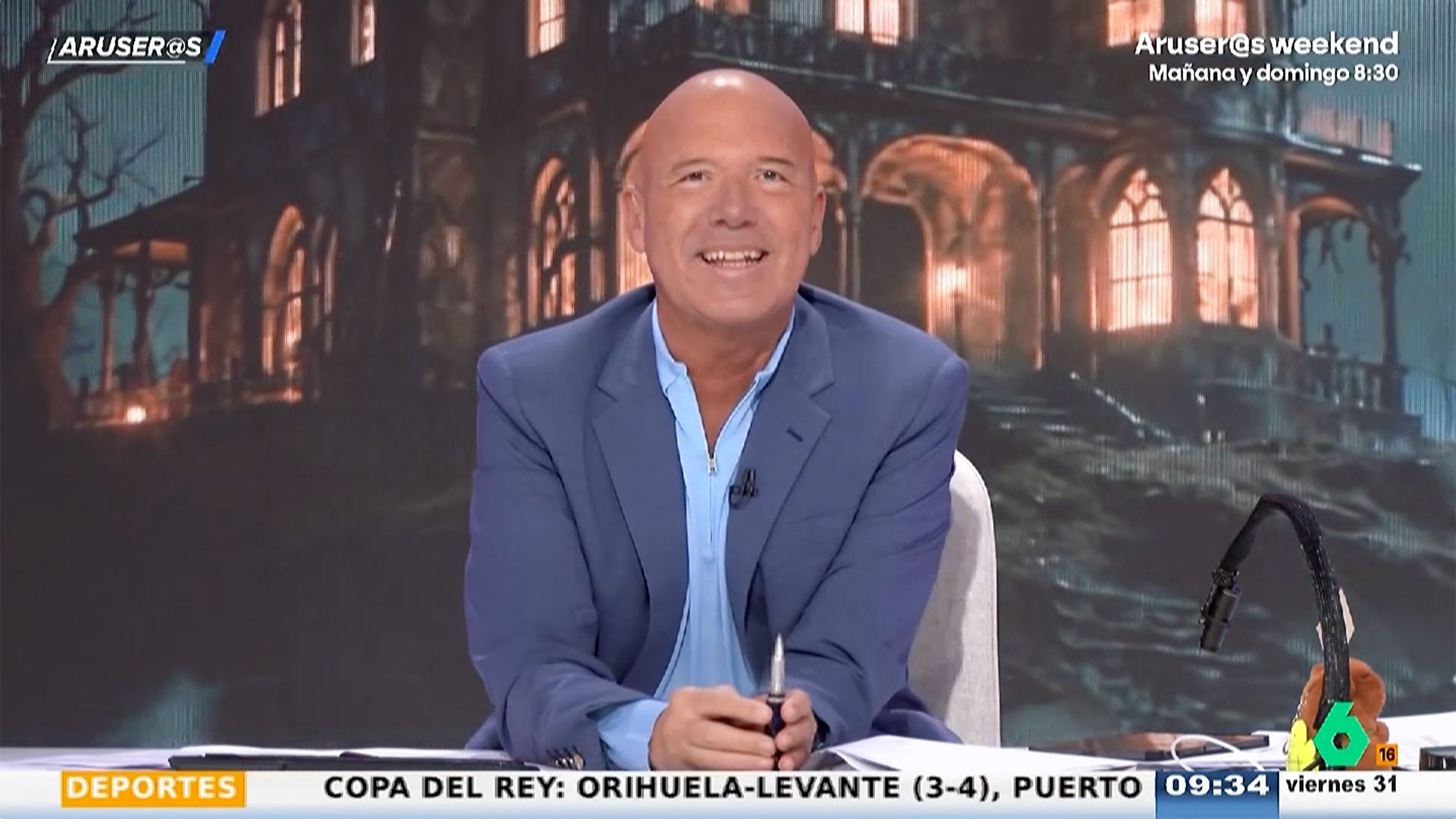 Una propuesta efímera: el plató se tiñó de sombras, luces anaranjadas y texturas fantasmales; calabazas que cobraban vida, brumas y destellos sobrenaturales. En la pantalla central, una mansión encantada bajo la luna llena completaba el ambiente, con niebla, puertas chirriantes y luces que parpadeaban entre árboles retorcidos. Todas las piezas visuales fueron creadas en FreepikAI, combinando distintas herramientas de inteligencia artificial para generar imágenes y clips que después se integraron en la escenografía. El resultado: un universo visual vibrante y divertido, alineado con el tono televisivo del programa.